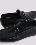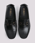 BLACK CROCOTEXTURED MOCASSIN