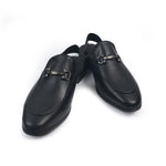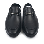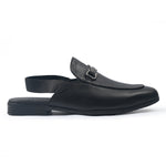 BLACK LEATHER BACKLESS MULE