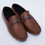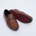 BROWN LEATHER EMBOSSED MOCCASIN